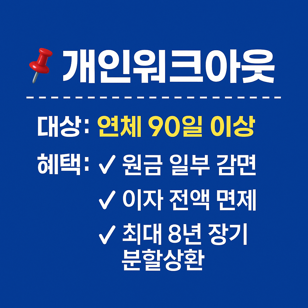 | 개인워크아웃 | 연체 90일 이상 | 원금 일부 감면, 이자 면제, 최대 8년 장기 분할상환 |