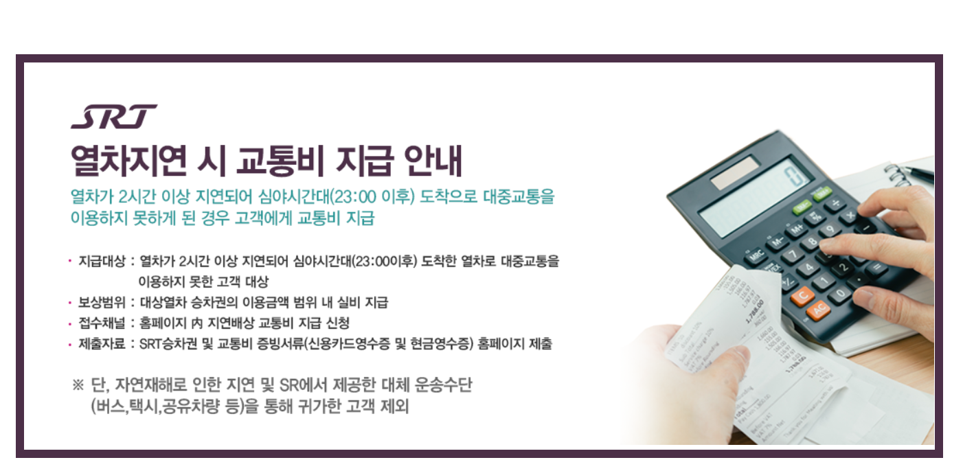 | 임산부 할인 | SR 회원으로 등록 및 인증 완료한 임산부와 보호자 1명 | 30% 할인, 1일 2회, 월 10회 이용 가능 |