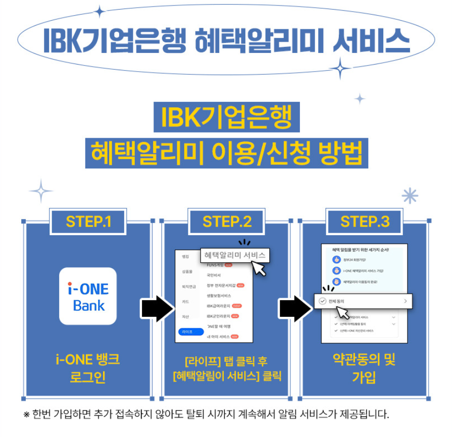 - '혜택알리미' 메뉴를 선택 후 서비스 가입을 완료합니다.