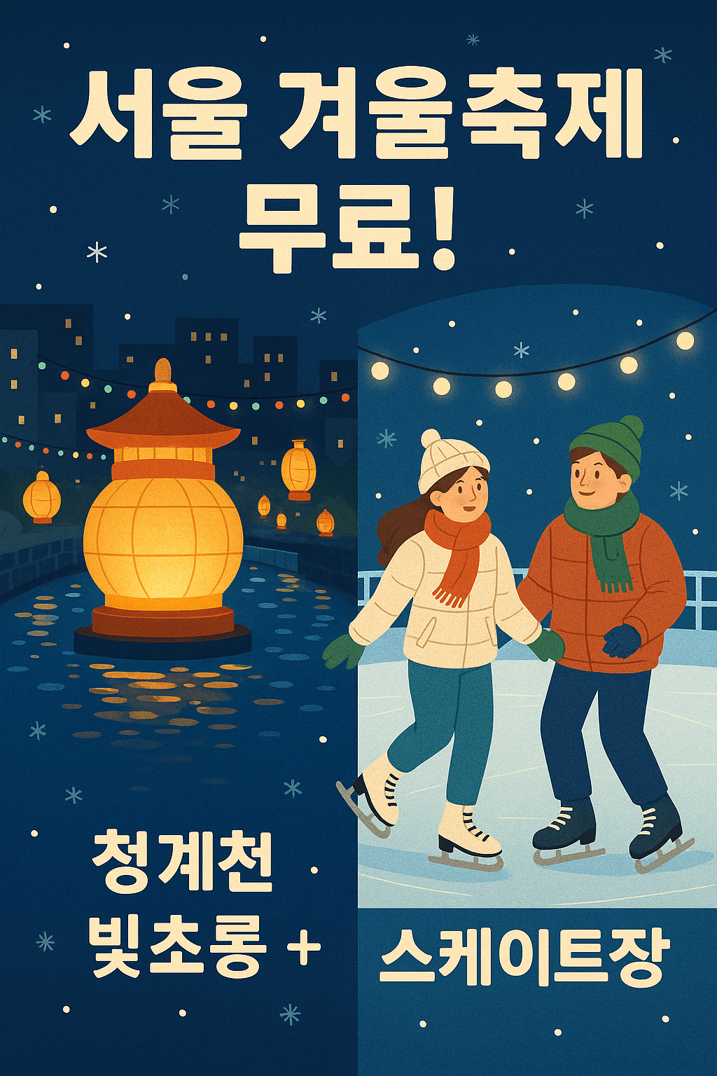 서울의 겨울이 빛과 낭만으로 물듭니다. 청계천 빛초롱축제와 서울광장 스케이트장은 완전 무료 또는 1,000원 수준으로 즐길 수 있는 서울 대표 겨울 명소예요. 연인과 데이트, 가족과 나들이, 연말 인생샷까지 모두 누릴 수 있는 필수 코스입니다.